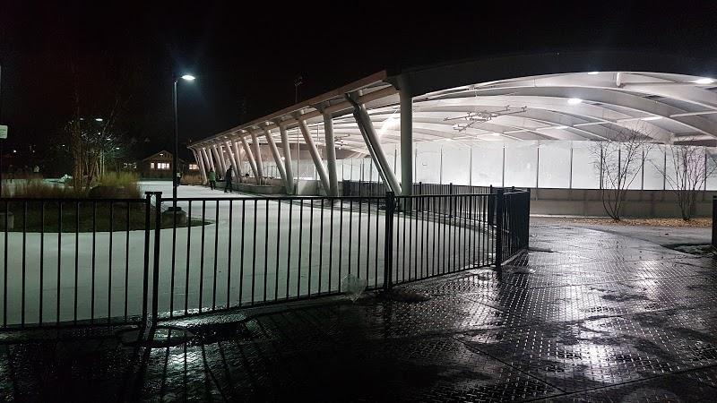 Despite the warmer temperatures we were lucky to get another night out on the rink. Greenwood has two rinks, one with boards and a trail. The skating rink with the boards is covered which is nice especially if raining. There are benches to put on your skates. Also access to bathrooms if needed. It's street parking so it can be hard to find a spot, we parked about a 2 mins walk away.