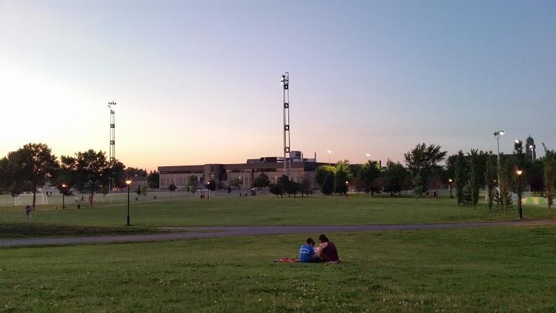 Big parc in Montreal. Good to meet your friends and arrange a picnic. I saw a bunch of people playing some games and the kids in the water park. Across the street there is a skate area and a football field.