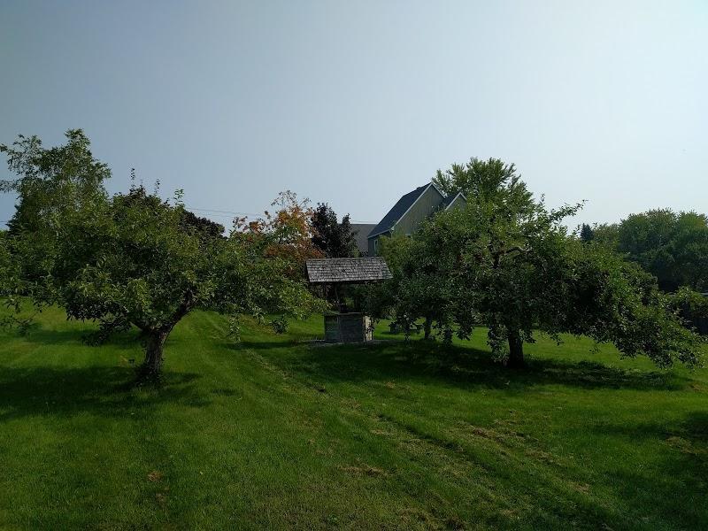 Peaceful orchard with an beautiful scenic view towards Mont St-Gregoire. Great place for picking apples. The juice offered here is delicious!