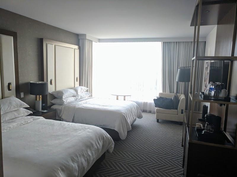 Very nice new rooms. Staff was very friendly and accomodating. It is attached to a brand new conference centre which is very nice as well as a small mall with a food court. There is a bar as well as a fancy restaurant by reception. Food was amazing and they have their own house wines and staff here were very friendly also. The one thing that was not great was the shower in my room. I guess i had a wheel chair room because their was a bench and the way the shower is positioned made no sense for anyone. The water pressure was weak and the temperature was not hot enough. Kind of sucked because i weigh the shower pretty heavily. It may have only been my room so I will keep the 5 star rating!