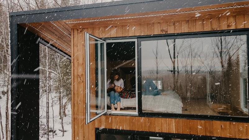 Laö Cabines offre de l'hébergement en forêt dans des cabines vitrées, contemporaines, ouvertes sur la nature. Quelques sites de camping sont également disponibles sur un terrain de 66 acres fabuleux, en Estrie. Vivre dehors, en dedans!